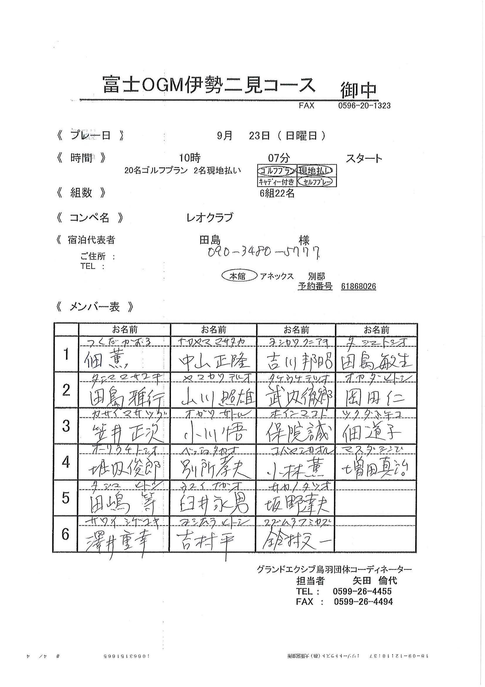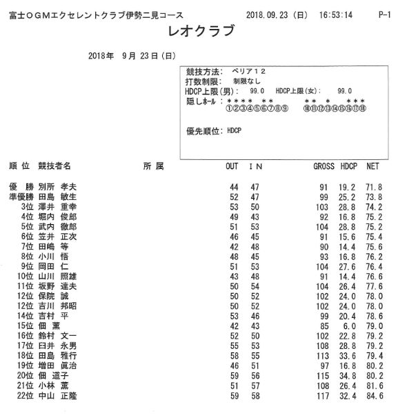 先般は、伊勢二見CCにて楽しいラウンドありがとうございました。